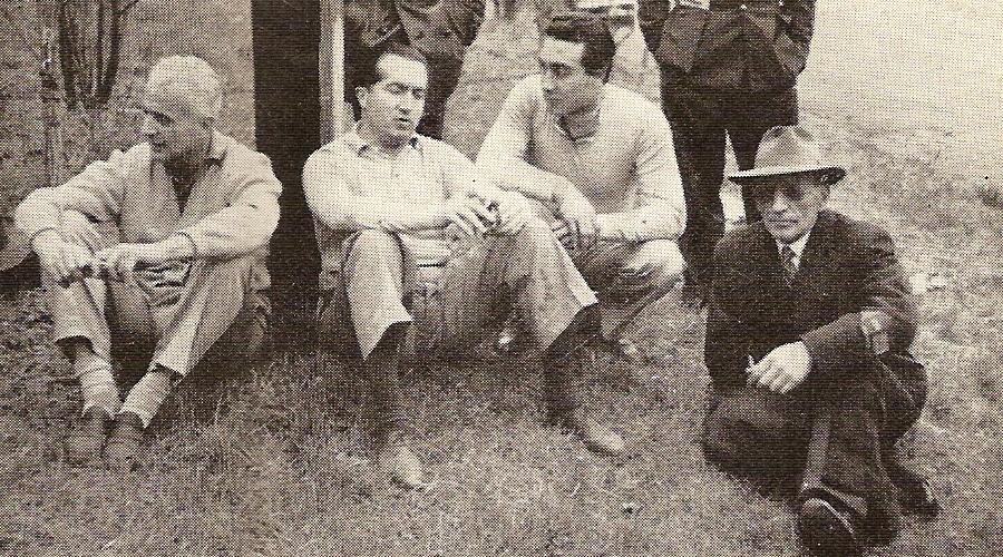 Vittori Jano (far right) with driver Alberto Ascari (centre)
