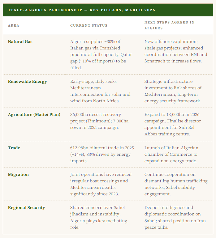 While Rome was convulsed by resignations and referendum fallout, Giorgia Meloni slipped quietly to Algiers for what may be the most consequential meeting of her premiership. The visit underlines how Italy has built an irreplaceable energy and security partnership in North Africa — and how the Iran war has made Algeria more valuable than ever.